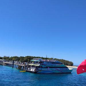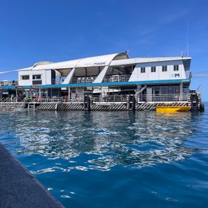 片道1時間半で高速船にてポンツーンへ行き、5時間ほどポンツーンで好きなことをできます。ポンツーンではシュノーケリング、グラスボート、ヘリコプター、ダイビング、ベンチで日焼けなどの選択肢があります。乗客はほとんど欧米人で、日本人は私達のみ、アジア系は韓国と中国のファミリー、カップルが2、3組いました。スタッフは10数人おり、1人ワーホリの日本人の方がいたので、日本語でプランの流れを教えてもらうことができ助かりました。往復の船の中でのアナウンスや談話、グラスボートでの解説などは当然全て英語です。私達の英語力は簡単な受け答えができる程度のレベルだったのでほとんど聞き取れませんでしたが、せっかくのオーストラリアなのでそれも味があったと満足しています。それにスタッフの方々が親切だったので何とかなりました。