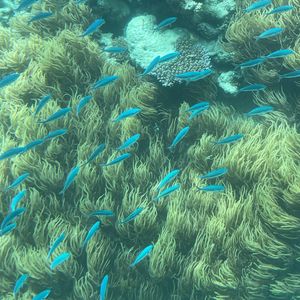 ・グラスボトムボートでは、サンゴ礁や様々な魚たちを見ることが出来ました。ドライバーさんが餌を巻いていたので、水面から顔を出す魚を見ることも出来ました。