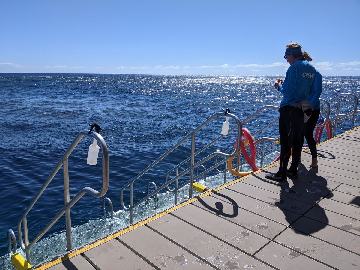 ポンツーンの階段を降りれば、深さのあるサンゴ礁の海と魚たちがすぐそこにいて、感激しました。