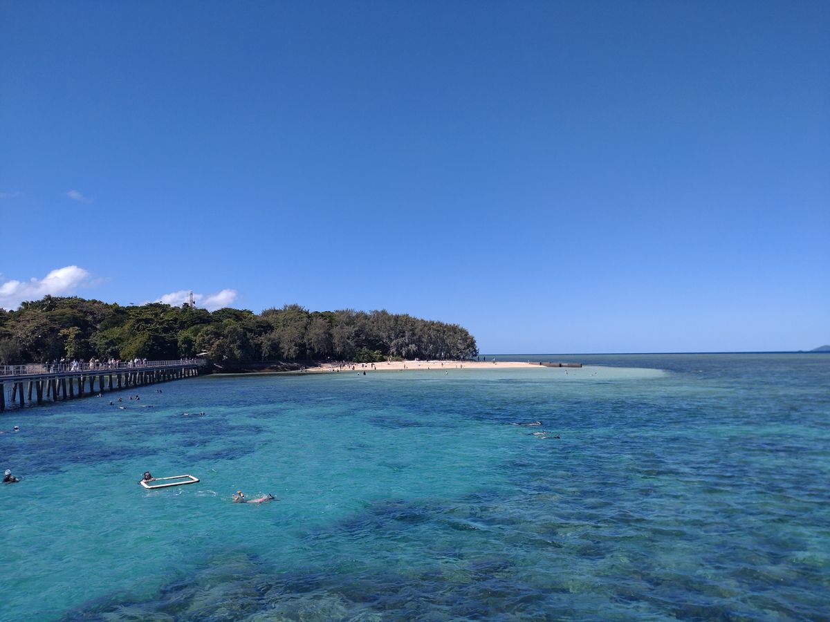 ケアンズの冬に行ったので朝晩は上着がないと肌寒く(ダウンジャケットを着ている人も)、泳げるのか若干心配でしたが、フィッツロイ島に行った日は昼間は晴れて、泳ぐのにちょうどよい感じなりました。