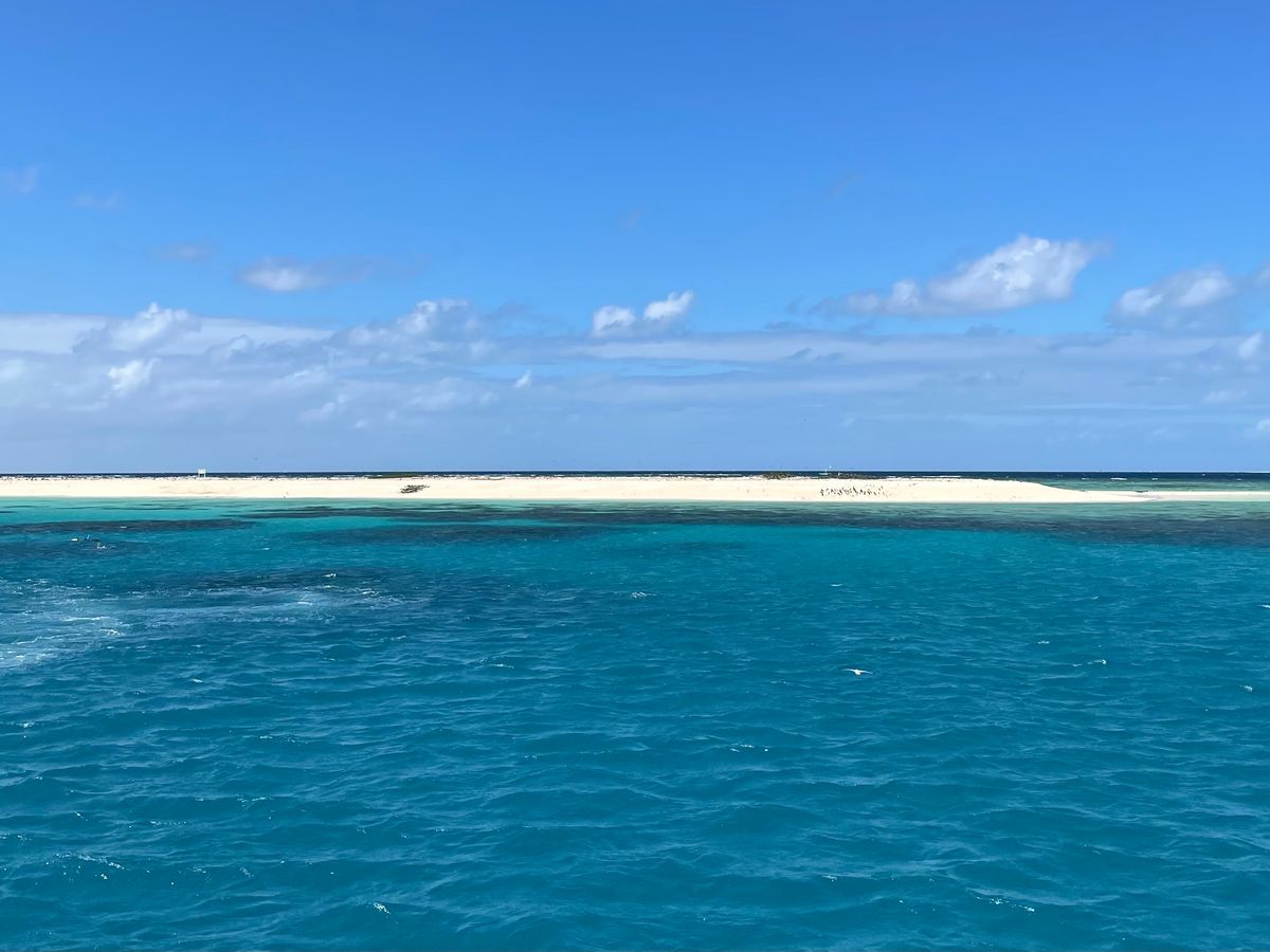2023年7月後半に10時30発、17時20ケアンズ着に参加。参加はケアンズ初日で飛行機が6時15空港着、ホテルに荷物を預け、ターミナル近くで朝マックし、ブラブラすると出発時間に。海は沖縄よりも青が濃く、コバルトブルーも鮮やかで感動。11歳の息子は水着だったが冷たくて腰までしか入れず。西洋の人はシュノーケルを楽しんでいた。足洗いがあり便利だった。初日に行って正解。とにかく海がキレイでまた行ってみたい️
