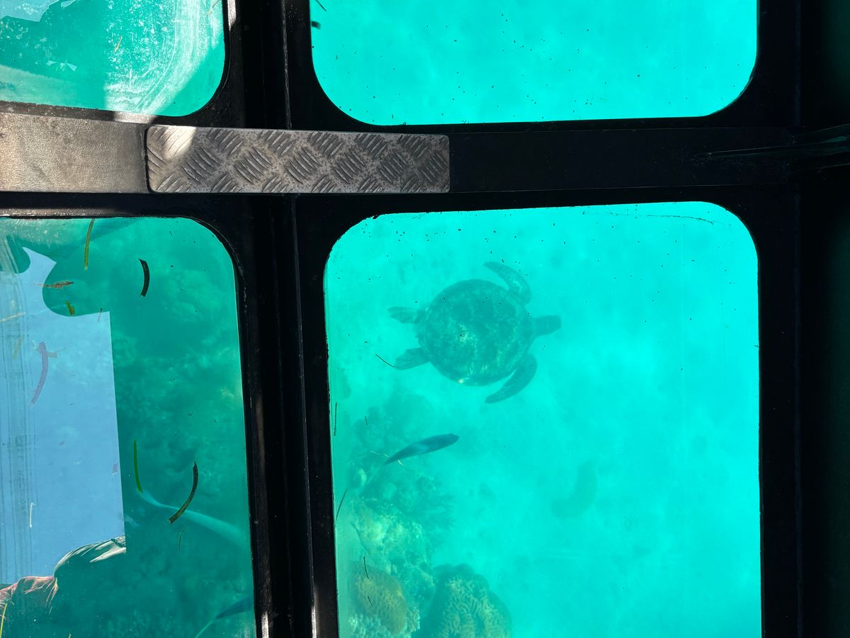 島で少し楽しんだ後は、グラスボートと半潜水艦に乗って、サンゴ礁やお魚さんたちを間近に見ることができました。