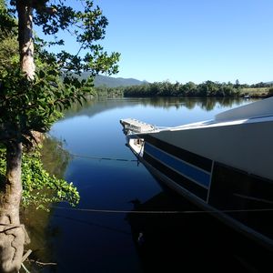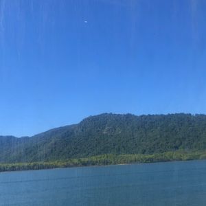 リバークルーズとのことでケアンズ市内から車でおよそ一時間くらいの港から出航でした。川からだんだん海へと下って行くので、少しずつ波が出てきます。一時間ほどでフランクランド島に到着しました。