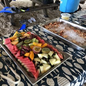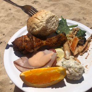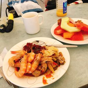 昼食ではパン、エビ、チキン、フルーツなどなどブッフェ形式で満足できました。