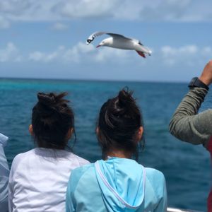 amu様、この度はオーシャンスピリットでミコマスケイへお越し頂きまして誠にありがとうございました。また、素敵なお写真の投稿と5つ星の高評価を頂きまして感謝いたします。おっしゃる通り、ミコマスケイでは海鳥の営巣する空き地の一角をロープを張って人間がお借りしている形になります。笑 グレートバリアリーフでも珍しい海鳥の繁殖地となっているためです。シュノーケル中に魚があまり見れなかったとのことお気の毒さまです。ビーチから沖合の白く四角い浮きのあるあたりを目指して泳ぐと大きなサンゴやたくさんの魚たちを見ることが出来ますが、小さなお子様には少々しんどいかもし出ません。またお子様が大きくなって、もう少し沖合まで泳げる力がついたら是非グレートバリアリーフをご再訪ください。クルー一同お待ちしております。