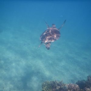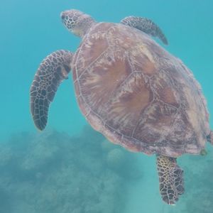 シュノーケリングでは、ウミガメを発見することができ、一緒に泳ぐことができました!