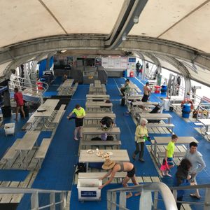 海はすごくきれいで、お目当てのグレートバリアリーフも魚もたくさん見れました。ただ、時期が冬だったためか、なかなか寒かったので、シュノーケリングはある程度で切り上げ、セミサブマリンやグラスボトムボートツアーを楽しみました。また、13時過ぎにはガイドによる餌付けタイムがあり、その際は50cm以上はあろうかというナポレオンフィッシュ・ウォーリー君を代表とする大きな魚たちをすぐ近くに見ることができて満足できました。
