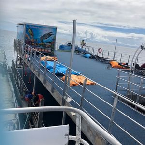 私と娘は初めてなので、ダイビング経験したく喜びましたが、その後船酔いで吐いてしまい、驚きました。酔い止めのんだのに。息子は大丈夫で、船の揺れを楽しんでいたほど。女性は大勢がダウンしてました。それも島に着けば治りますが。