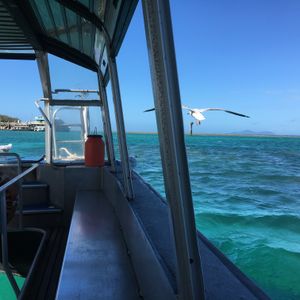 天気ばかりはしょうがないのでしょうが、曇ったり雨が降ったりで気温も肌寒く少し残念な感じでした。雨宿りする場所がレストランかプールサイドのカフェくらいしかなく、ちょっと不便な感じがしました。オプションでシーウォーカーを当日船内で申し込みましたがスムーズでした。海中で写真を撮ってくれるので、写真かデータを買う形になります。私はデータを買いましたが、可愛いUSBでくれるし、動画とグレートバリアリーフのベスト写真も入れてくれるのでお得な気がします。昼食のメニューが文字だけでイメージが湧きにくいので、写真を載っけてくれるといいな、と思います。荷物は島内のコインロッカーに預けられます。$7か$9で時間内はフリーで使えるので、ツアーの時間によって使い分けるといいと思います。