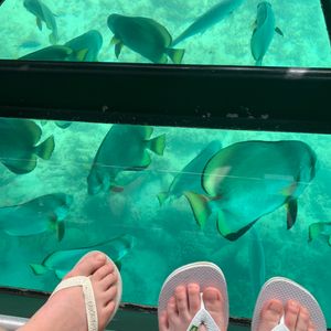 海はとても綺麗でした。魚はたくさんいますが、カラフルな魚は少なめです。でもナポレオンフィッシュにはたくさんいます!水面近くまで上がってくるので少し潜るだけで横を泳いだりできましたよ。水中カメラがあるともっと楽しいと思います!