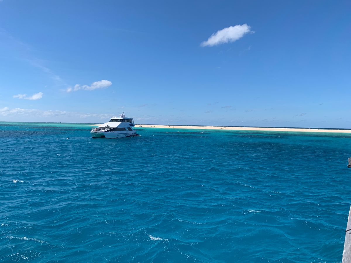 ケアンズの天気予報ではずっと雨となってましたが、沖に出たら快晴で綺麗な海が見えました。