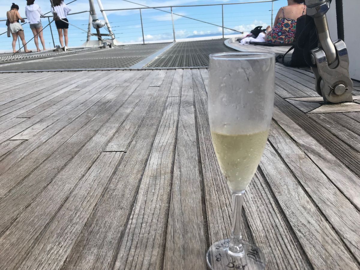 帰りはスパークリングも振る舞われ、デッキで海風を浴びながらとても優雅な気分で非日常感をゆったり味わえました。