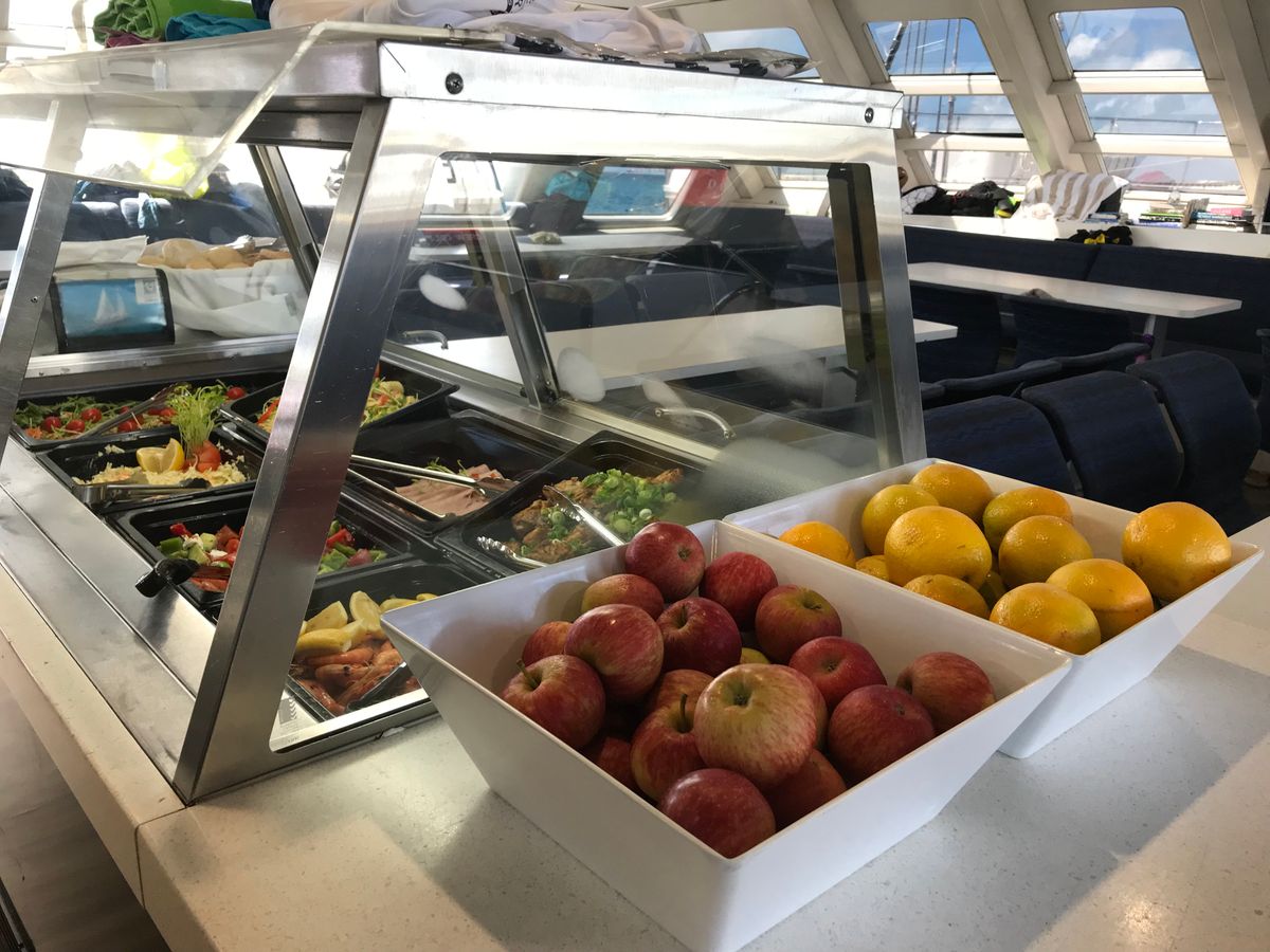 雨期ということもあり、天気が不安定でした。当日の朝7時までキャンセルや変更を受付てくれるのは有り難かったです。当初予約日朝はかなり雨が降っていたので、翌日に変更して頂きました。翌日も曇りがちでしたが、グリーン島に着いたら良い天気でした。ケアンズ市内と島は天気が違うようです。高速船はとてもきれいで、乗船クルーの方々も親切で、快適なクルージングでした。グリーン島は小さな島なのでレストラン、トイレ、遊泳場所の行き来も安易でしたが、台風後の海水が濁っていて、肝心のシュノーケリングはあまり楽しめませんでした。そこだけ残念でした。
