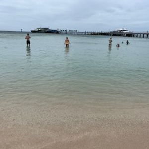 12時半にリーフ・フリート・ターミナルに行きバウチャーを見せてチェックインしました。簡単なやり取りなので英語が苦手でも問題ありません。出航する番号を教えてもらい船がやってくるのを待ちます。ちょうど私がグリーン島に行ったときは、2週間毎日雨が降り続いていたそうで、当日もかなりの強風でした。チェックインカウンターにもrough conditionと記載されていました。その通り、45分間上下左右に揺れ続けました(笑)事前に日本から持ってきた酔い止めを飲んでいたのですが、気分の悪さはありました。普段乗り物酔いをしない主人でもトイレに駆け込んでしまうほどでした。様子を見かねたスタッフの方が、一番揺れの影響を受けない席に案内してくださり、到着まで横になって過ごしました。グリーン島に到着後、シュノーケルセットを借りてビーチに向かいました。後で知ったのですが、シュノーケリングのポイントとは反対のビーチでシュノーケリングをしていたため、あまりサンゴやお魚を見ることができませんでした。また雨の影響か海水も砂が舞っていました。しかし、終盤に桟橋の近くにたくさん人がいることに気づき向かうと、小さなお魚の大群を発見できました。間近でお魚を見れたことで、船での気持ち悪さも吹っ飛びました!16時半がグリーン島出航の最終便なので、シュノーケリングしかできなかったのが心残りです。次は午前中から行きグリーン島散策も楽しみたいです。帰りの船では早々に眠ってしまったので気持ち悪さを感じることなく帰れました。