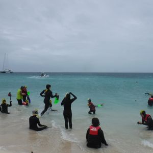 yukie様、この度は、グレートアドベンチャーズにご乗船、そしてグリーン島のお越し頂きありがとうございました。また、5つ星の高評価を頂けました事ありがとうございます。グリーン島は少ない日でも1日に600人、多い時には1300人ほどの訪問客が訪れる島です。グレートアドベンチャーズでは、往復のフェリーと島でシュノーケリングするのに必要なセットの貸し出しをしておりますが、海での遊泳は、日本の海水浴場と同じです。グレートバリアリーフへ行く少人数のクルーズでは、シュノーケルのレッスンをスタッフがお客様の前で行っているものもありますが、グレートアドベンチャーズでは、行きの船内モニターでシュノーケルセットの装着の仕方やフィンを使っての泳ぎ方など放映しています。yukie様ご一行が安全にグリーン島でシュノーケルされ、楽しんで帰国されたことうれしく思います。また機会がございましたら、是非、グレートバリアリーフのアウターリーフやミコマスケイなどの他の島にも訪れてみてください。yukie様のご再訪をクルー一同お待ち申し上げております。重ねまして、この度は、グレートアドベンチャーズでグリーン島にお越し頂きありがとうございました。