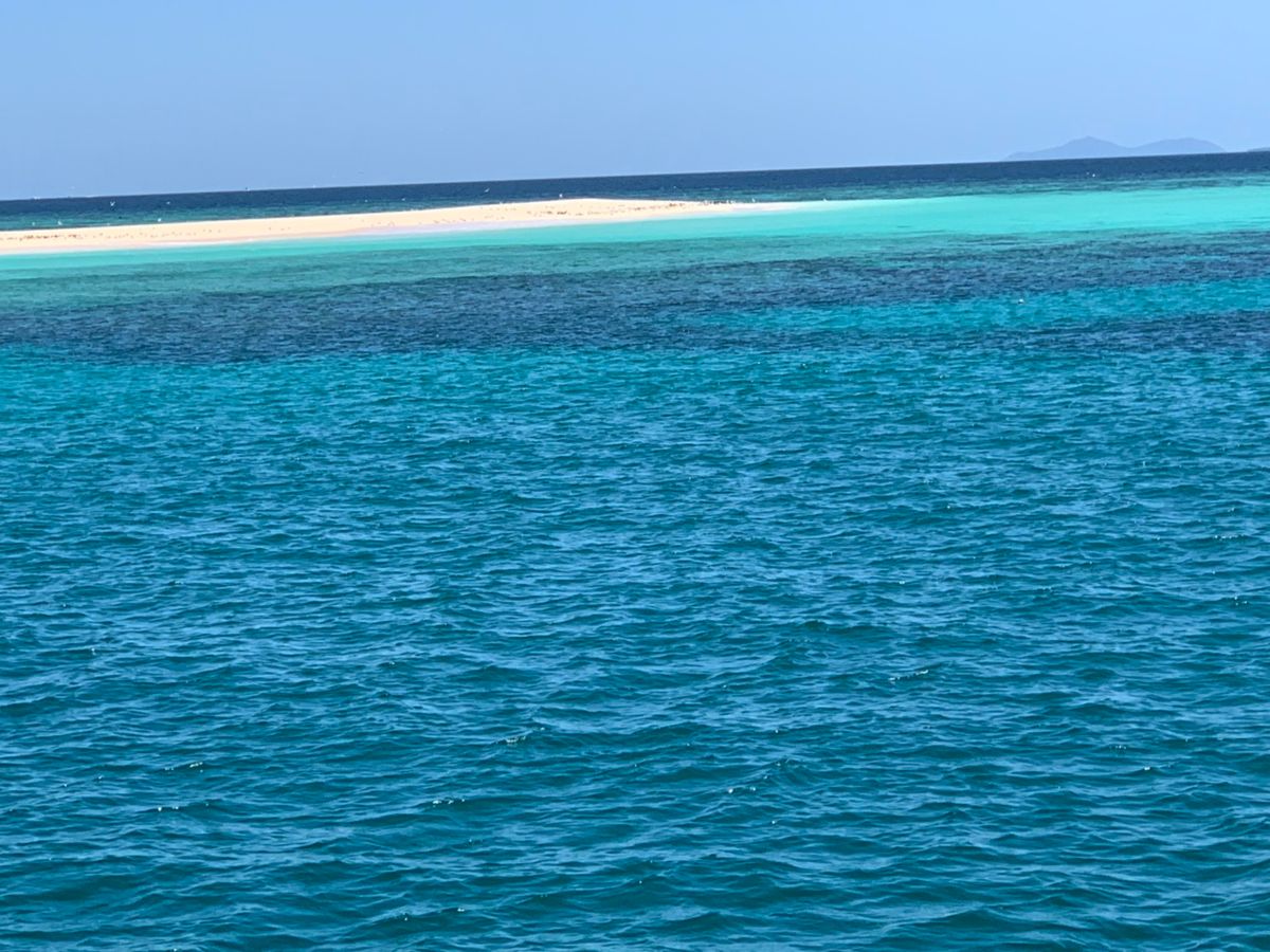 到着するとまず見えるのが「これこそイメージ通りのグレートバリアリーフ」と言わんばかりのエメラルドブルーの海です。浜辺から50メートルほどでエメラルドブルーから蒼色に海が様変わりし、とても綺麗でした。