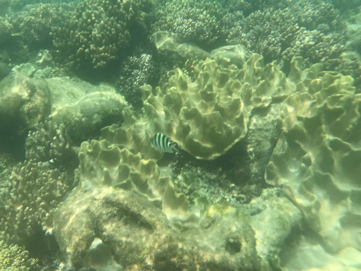 肝心の海の中も、透明度が高くなくてもそこら中に熱帯の鮮やかな魚が群がっているので見応えは抜群です。移動するたびに新しい魚に出会えました。
