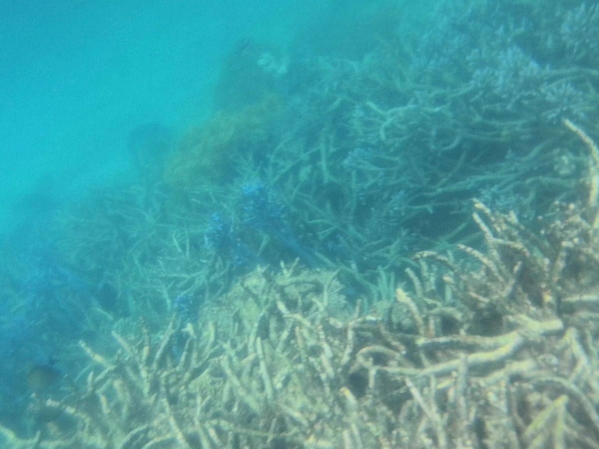 この日はどこまでも透き通ると言った感じではなかったですが、広大な珊瑚と魚がたくさんいていつまでも泳いでいられました。1mくらいのナポレオンフィッシュも近くをずっとうろうろ、だいぶ人慣れして(餌でも貰ってるのかな?)上がるときに気づいたら足元にいて触れました笑