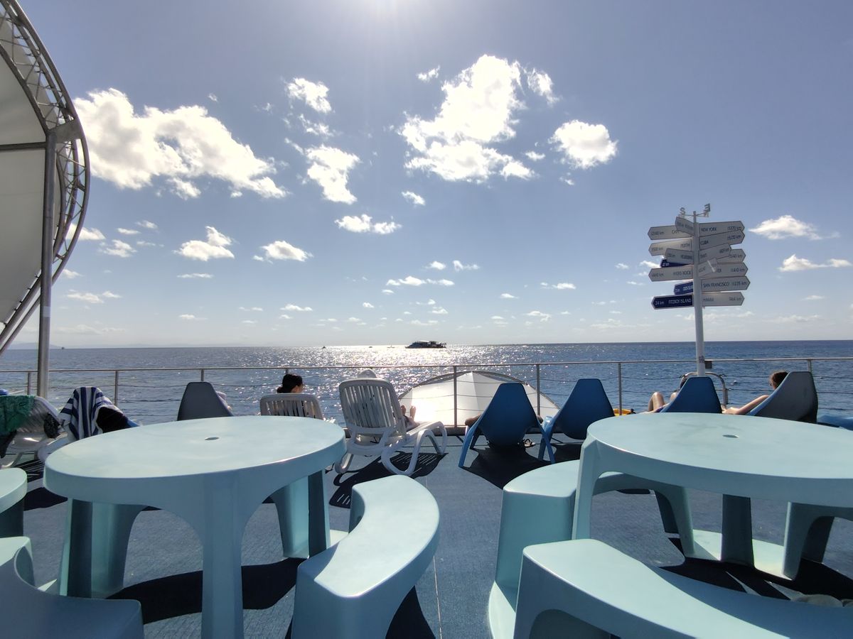 私はかなり乗り物酔いがひどいタイプなのですが、船内では室内にこもっているのではなくデッキに出ていたのでそこまで酔いませんでした。室内はかなり冷房が寒いです。