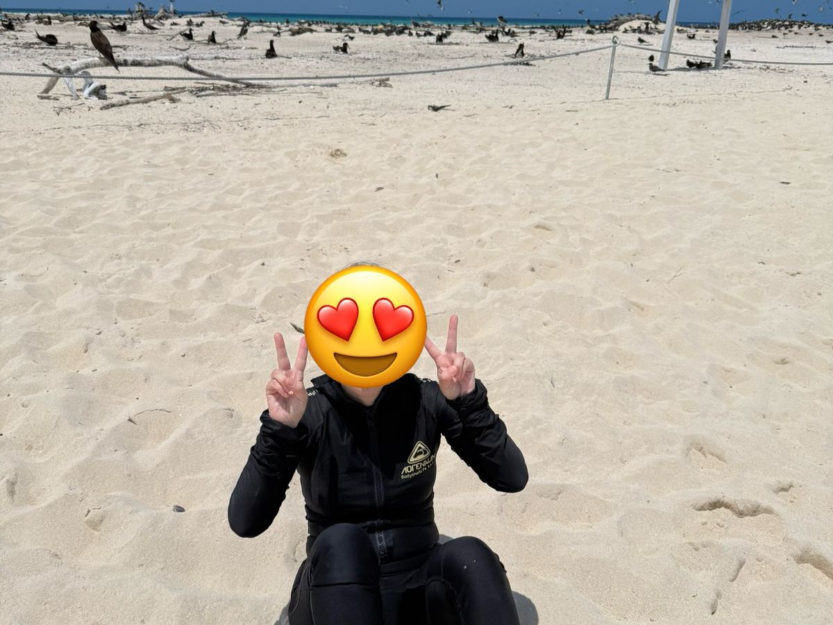 11時30分:島に到着!島に着くと、ビーチが綺麗すぎてびっくりしました。荷物は屋根がある日陰に置いて、すぐにアクティビティ関連や昼ごはんなどの説明がありました。この際も先程と同様に日本人ガイドのNanamiさんから日本語での説明がありました。説明の際に、たまたま海からウミガメが顔をだしたのがらみえて、早速テンションが高まりました。ちなみに、島でのトイレは自然に還すか仮設トイレのようなもので用を足すかの基本的に2択、というような説明がありました。私は自然に還しました。
