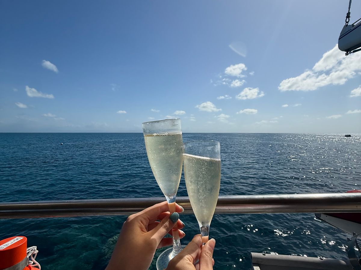 泳ぎ終わった後はスパークリングワインとフルーツを楽しむことができ、すごく満足。