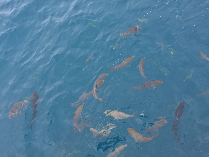 クルーの方に聞いたところ海の生き物たちの姿はかなり少ないとのことでした。