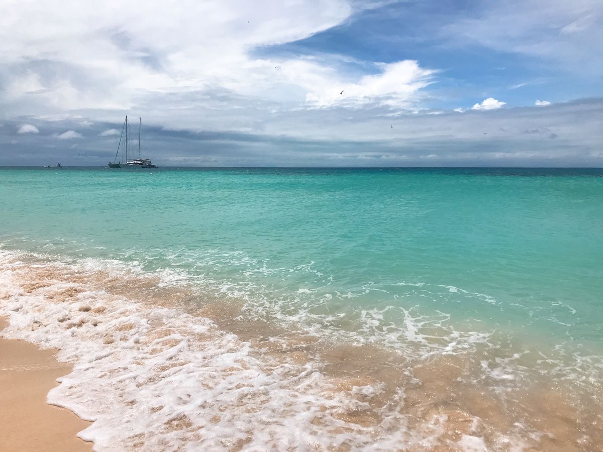 到着時は曇りでしたが、だんだん晴れてきた後の空と海の綺麗さは圧巻でした。砂浜も白砂でとても綺麗でしたが、しいていうなら、雨の後だったため波が強かったこと、ビーチが思ったより狭かったことが残念だと思いました。ただ本当に離島という感じで、行ってよかったとは思います。