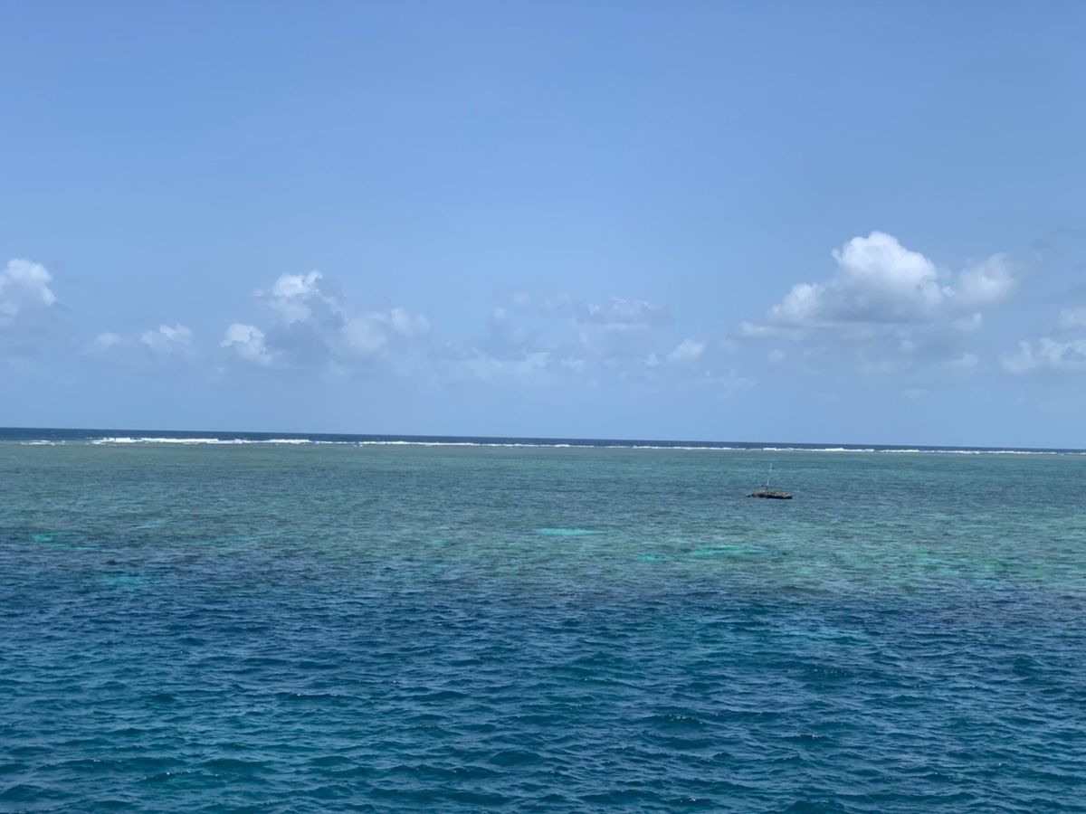 ポンツーンに移ったらそんなに揺れは感じなくなりました。海ではナポレオンフィッシュと亀が泳いでいるのが見れました。本当に目の前なので感動しました。