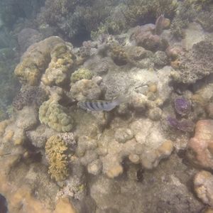 海に5mも入れば、魚の群れがいます。ずっと浅瀬なのでサンゴで足を怪我する可能性がありますが、シュノーケルで魚と並走出来て満足でした。