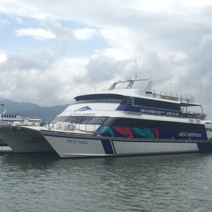 グリーン島まで約一時間。船内はかなり冷房がきいているので、羽織るものを持って行くことを強くオススメします!リーフフリートターミナルでのチェックイン時にシュノーケルセット貸出かグラスボトムボート乗船のどちらかの選択ができ、グラスボトムボートの場合は乗船時間もその時に決められます。シュノーケルセットを持参して、グラスボトムボートを選択するとどちらもできるのでオススメです。グラスボトムボートからは沢山の魚やナマコなども見られてとても楽しかったです!シュノーケルでも沢山魚が見れました!!海も透明度が高くすごく綺麗で感動しました!島内のワニ園は有料なので行けてません。島内のロッカーが出し入れ自由なので便利でした。