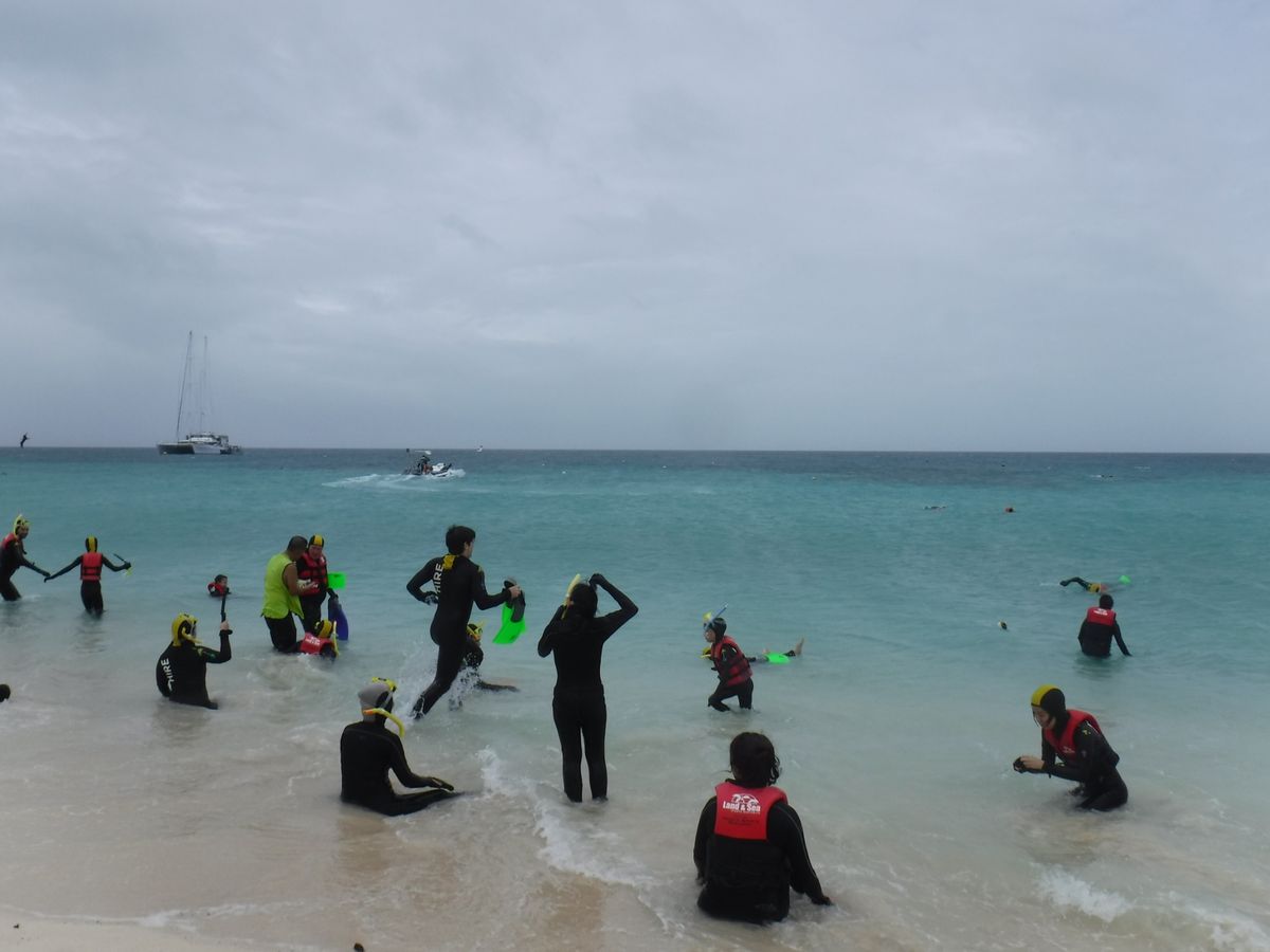 yukie様、この度は、グレートアドベンチャーズにご乗船、そしてグリーン島のお越し頂きありがとうございました。また、5つ星の高評価を頂けました事ありがとうございます。グリーン島は少ない日でも1日に600人、多い時には1300人ほどの訪問客が訪れる島です。グレートアドベンチャーズでは、往復のフェリーと島でシュノーケリングするのに必要なセットの貸し出しをしておりますが、海での遊泳は、日本の海水浴場と同じです。グレートバリアリーフへ行く少人数のクルーズでは、シュノーケルのレッスンをスタッフがお客様の前で行っているものもありますが、グレートアドベンチャーズでは、行きの船内モニターでシュノーケルセットの装着の仕方やフィンを使っての泳ぎ方など放映しています。yukie様ご一行が安全にグリーン島でシュノーケルされ、楽しんで帰国されたことうれしく思います。また機会がございましたら、是非、グレートバリアリーフのアウターリーフやミコマスケイなどの他の島にも訪れてみてください。yukie様のご再訪をクルー一同お待ち申し上げております。重ねまして、この度は、グレートアドベンチャーズでグリーン島にお越し頂きありがとうございました。