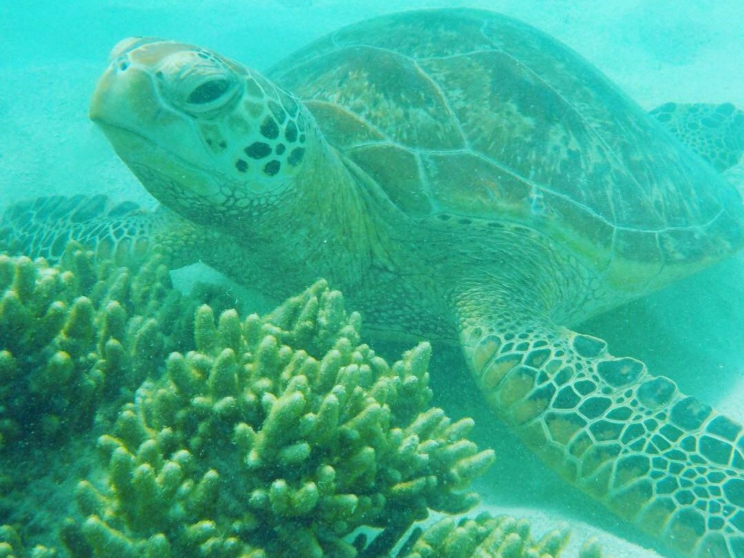 シュノーケリングをして綺麗なサンゴや魚を見ることが出来て満足していましたが、更にカメに2匹と遭遇する奇跡が起きとてもテンションが上がりました!!