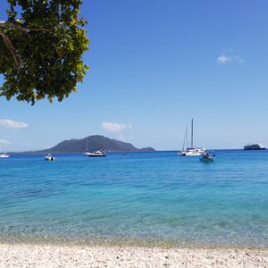 青い海に白い砂浜のコントラストがとても綺麗でした。島には鳥がたくさんいるので臭いがします。初めてダイビングをしました。日本人のガイドさんが説明してくれたのでよかったです。