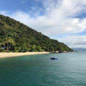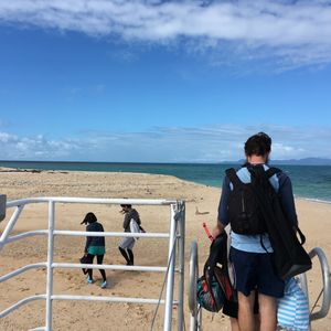 雨予報でしたが天気は晴れ、良かったです。船乗り場から船でフィッツロイ島に向かいました。「今日は風が強いので波が荒れてるよ。だから薬とか持ってる?」などスタッフさんに気軽に喋りかけてもらい、一層に楽しみになりました。船の方は良い感じに揺れて、私たちは移動から楽しかったです。そしてフィッツロイ島に着き、綺麗な海、壮大な森、見た瞬間圧倒されました。ビーチも砂ではなくて、珊瑚達でできたビーチでとても綺麗で気に入りました。