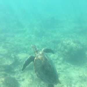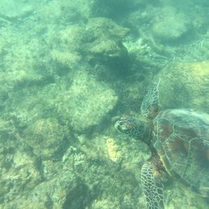 シュノーケルもガイドさんがサンゴのあることろまで誘導してくれるし、潮が引いていて、浅瀬でもウミガメに遭遇しました!ウミガメを船から見るのも滅多に見れないそうだけど、一緒に泳ぐような感じで間近で見れてとてもラッキーでした!!