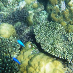 無料貸し出しのシュノーケリング器具で、シュノーケリングをしました。恥ずかしながら、私達はあまり泳ぎを得意としていないため、ずっとガイドさんについて回りました。ガイドさんはサンゴが綺麗なスポットを熟知されているため、色とりどりのカラフルなサンゴ礁にお目にかかることが出来、感激しました。
