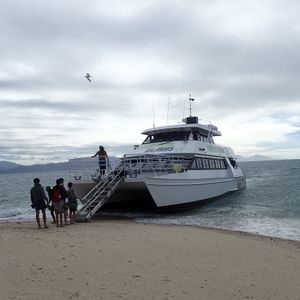 私は GWにケアンズに行った際に、こちらのツアーに参加しました。当日は、ホテルまでバスが迎えに来てくれて、日本人だけでなく他の国の方とも同じバスに乗り、ツアースタッフさんが丁寧に説明をして下さりました。船に乗り込むと、安全説明や 島でのアクテビティごとの説明がなされました。