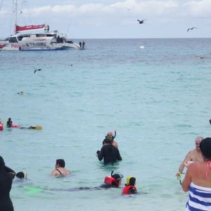 オプションはスタンドアップパドルとシュノーケルの2つを申し込んでいた、それは天気が悪くても十分に楽しめました。前日から雨が降っていたにも関わらず、あの透明度はすごいです。ビーチのほとんどが砂ではなく、白い珊瑚なことに驚きました。私は初めて見たので、綺麗でおしゃれに思う反面、裸足で歩くのは痛いです(笑)ビーチサンダルは必須です。このツアーは滞在時間も長く、海はきれいだし、人も少ないのでまったり過ごしたい方にはおススメです。