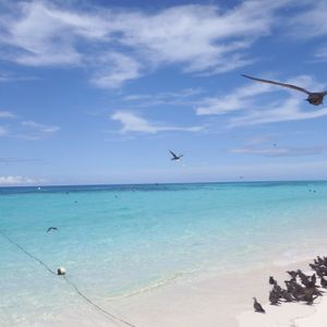ケアンズでのバードウォッチングの「とり」でミコマスケイクルーズに行きました。たくさんいることは前情報で知っていましたが、本当にすごい数がすぐそこにいました。カツオドリ、クロアジサシの雛がたくさんいて、かわいかったです。白い砂、青い海、海鳥の素敵な世界でした。カメラが砂を浴びないようにザックとシートを持って行ったので、砂浜にカメラを置いてシュノーケリングもしました。