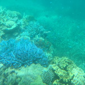 かなり沖まで一生懸命泳いで、白い珊瑚があるぐらい。