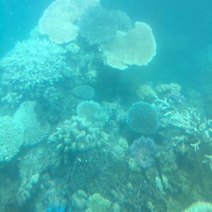 ケアンズのこの時期は雨期。予報は強い雨でしたが、とてもいい天気で青空と、きれいな海でした。シュノーケリングを満喫しました。白砂でサンゴがないかと思いましたが、サンゴ礁もあり、エダサンゴ、ノウサンゴ、大きなシャコガイ、大きなウミガメや、エイ、ロウニンあじ、目の前を泳いで行きます。かめを置きかけて動画を撮って大喜びしたのですが、うっかり消してしまい泣きました。