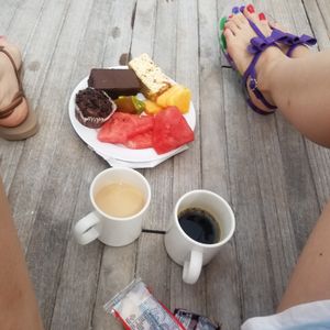 出港前のコーヒー、紅茶とマフィン(各自自由)と食事もよかったです。