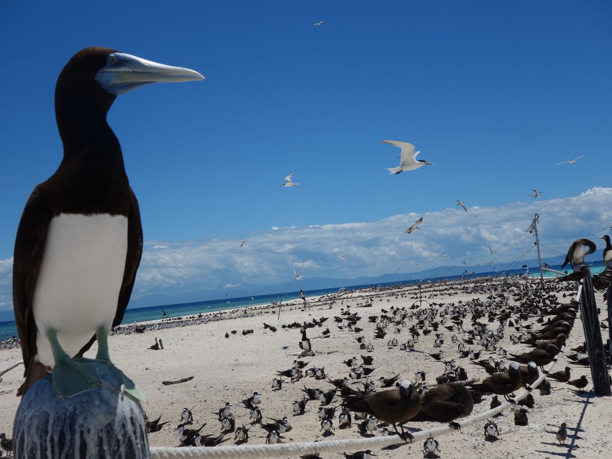 島に上陸すると透明度の高い海と無数の鳥達が出迎えてくれます。