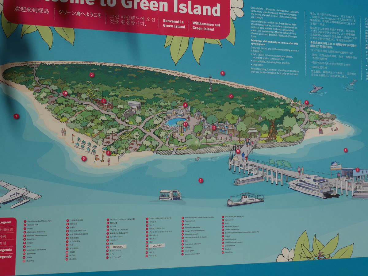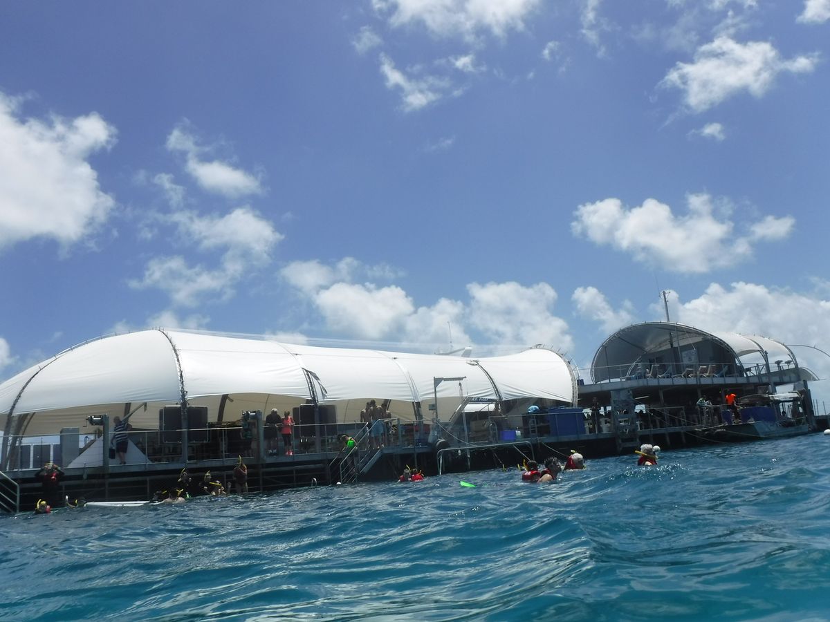 グリーン島についてすぐに予約していた足つぼマッサージをして、その後は島内を散策しました。しばらくしてアウターリーフに向かいましたが、シュノーケリングだけでなく、ポンツーンでの景色や食事、半潜水艇なども経験することができて、大満足です。ナポレオンフィッシュに触れることもできました。ポンツーン近くにはヘリポートもあり、このツアーではありませんがヘリ経由でくることもできるようです。また天気が良く、風もなかったおかげで行き帰りともに船酔いの心配はありませんでした。