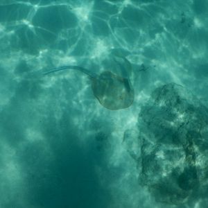 岩場の近くには少し大きめの魚がいるので、魚が見たい人はその辺りで泳ぐと綺麗な色の魚も見れると思います。