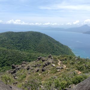 山頂からは、海に珊瑚礁が、島の中腹までは熱帯雨林が、そして山頂付近には針葉樹が広がるという神秘的な光景を楽しめました。