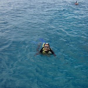到着してすぐに 体験ダイビング 4人1組にインストラクターが1名、インストラクターは全員日本人の方。島に到着後すぐに簡単な練習をしみんなで腕を組スタート 「かくれクマノミ」「しゃこがい」を見せてくれたり、天候が悪かったせいか?少し濁っていました。 私と娘は「初体験」だったので 呼吸の仕方や耳抜きなどうまくできず 他の2人の方・インストラクターの方に迷惑をかけてしまいました。(帰りの船内で インストラクターの方から体験ダイビングの終了書をいただいた際 いろいろお話しして、迷惑をかけてしまったことを話すと「みなさん 同じですから気にしないで大丈夫ですよ!」と笑顔で答えてくれて 素晴らしいフォローだなぁ~とホッと・・・)