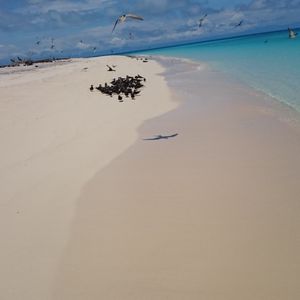 ミコマスケイに到着してすぐに船上からカメを発見。そして何もない島へ上陸。そこは鳥さんのパラダイス。しばらく鳥を観察して船へ戻り半潜水艦に乗船。それからおいしいランチを頂いて再度島へ上陸。シュノーケル開始してすぐに水中でカメに遭遇。手で触れる位置まで近づいてきてくれたカメさん。でかすぎるシャコガイ、マダラエイなどにも会えました。素敵な時間でした。帰りの船上ではのんびりと日向ぼっこ。ヨットの帆が大空に羽ばたいてそれはもう最高にリラックスの時間でした。皆さんもぜひ体験してみてください。この大自然の雄大さを(^.^)