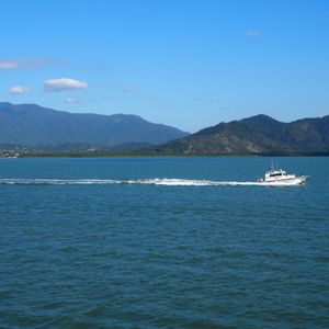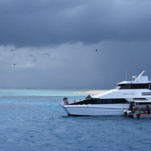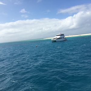当日、ケアンズはあいにくの曇り空でしたが、ミコマスケイは晴天率が高いという話を聞き、ドキドキで向かいました!ケアンズからは中型の船で向かうため揺れは激しくありません。船酔いしやすい私も薬を飲んだので全く大丈夫でした!