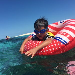 息子はシュノーケルグッズを使いこなせるかわからなかったので、日本からのぞき穴付きのバケツと浮き輪のセットを購入し持って行きました。が、決局は普通のゴーグルと丸い浮き輪が1番使えました、、救命胴衣もサイズがあるかわからなかったので、日本から持参しました!これは良かったです。